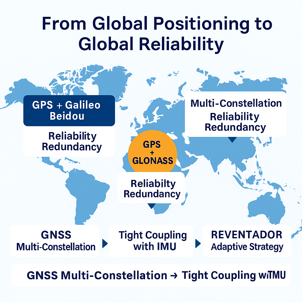 - 从芯片到系统:与 IMU 紧耦合后,多星数据成为连续性的基座;结合 REVENTADOR 的自适应策略,多源信息按场景动态取舍,形成真正的系统级可靠。